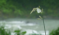 | 御岳渓谷:多摩川は増水 | 渓谷沿いの歩道:静か | ドクダミ:歩道脇のアチコチで群れ咲く | スジグロシロチョウ:雨に耐える? | |