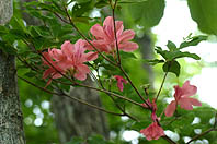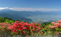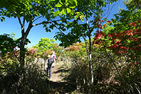 | ナンゴクミネカエデ:花は盛り過ぎ | トウゴクミツバツツジ:花は散り加減 | ヤマツツジ:中腹より上は花の盛り | サラサドウダン:花の盛り間近 | |