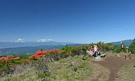 | 柳沢峠先の登山道:緑の中を行く | 柳沢ノ頭:ヤマツツジが点々と咲く | ハンゼノ頭下:ヤマツツジの花道 | ハンゼノ頭:富士山や南アを展望する | |