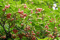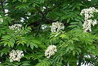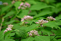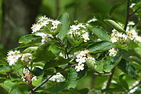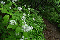 | ニシキウツギ:尾根筋で咲き始め | サラサドウダン:尾根筋で花は終盤 | オガラバナ:尾根筋で花は遅め | ナナカマド:尾根筋で花の盛り | |