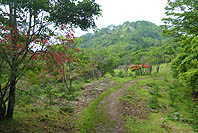 | 西久保の旧道:緑で道は隠される | 西久保対岸の山肌 | 道所橋周辺 | ヤマボウシ:花の盛り | |