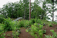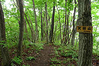 | 登山道中腹:低木が道にかぶる | 松生山頂:携帯局アンテナが設置 | 天領山頂:山名板がついた | 入沢山:周辺は草深い | |