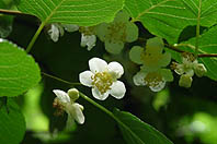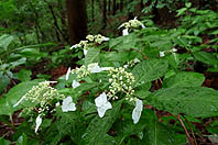 | ホオノキ:花はやや遅め | ガクウツギ:花の盛り | ガマズミ:花の盛り | マタタビ:葉が白くなってきた | |