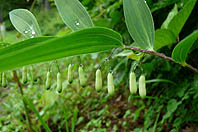 | ツクバネソウ:咲き始め | ミヤマナルコユリ:花の盛り | コジャノメ:下部林縁で複数見る | ニホンカワトンボ:雨でも飛ぶ | |