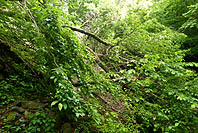 | 大岳沢の沢筋:苔むす岩場の道 | 大岳沢上部:下草が繁茂 | 大岳山頂:緑に囲まれる | ロックガーデン:緑深い | |