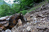 | 踊平:獅子口へは通行止め表示 | 崩落箇所:迂回の踏み跡がはっきり | コアジサイ:アチコチで花の盛り | ヤマアジサイ:下部で咲き始め | |