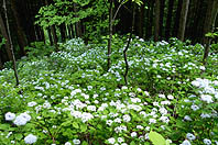 | 岩茸石山頂:ここも緑7鯉 | 岩茸石山頂から見る棒ノ嶺方面 | コアジサイ:林下のアチコチで花の盛り | ヤマアジサイ:下部林下で咲き始め | |