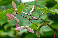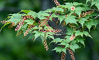 | サラサドウダン:結実 | コミネカエデ:尾根筋で花の盛り | ヒトツバカエデ:花は終盤 | ハウチワカエデ:翼果も散り残り | |