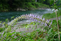 | 御岳橋から見る渓谷:多摩川は増水 | 渓谷沿いの北岸歩道 | 渓谷沿いの南岸歩道 | クガイソウ:花は終盤 | |