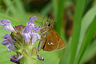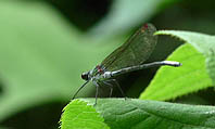 | ユキノシタに止まるスジグロシロチョウ | ウツボグサに止まるオオチャバネセセリ | ミヤマカワトンボ(♂) | ニホンカワトンボ(♂) | |