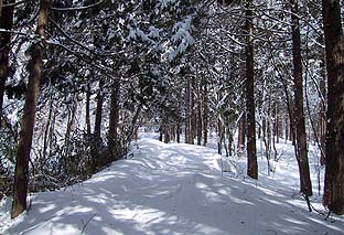 ← | 笠取小屋下の道 ※吹き溜まりで腰丈位のラッセルとなった ※登りだったら大変だ |