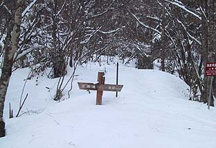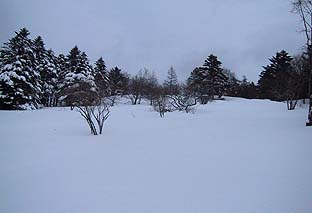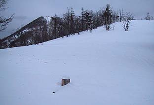 作場平入口付近 ※踏み後はごくわずか (この付近で積雪40〜50cm) |
