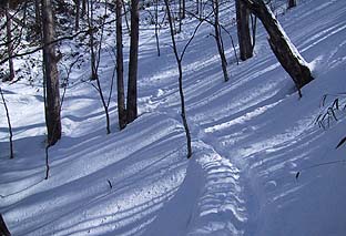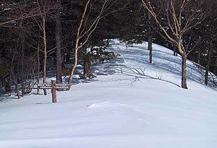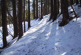 植林帯に入ると日陰となり雪は残る ※残雪量は少ない |