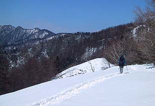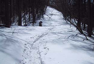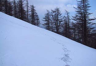 ブナ坂手前 ※雪は多いがトレイルははっきりしている (七ツ石小屋からの道に合流後は緩やか) |