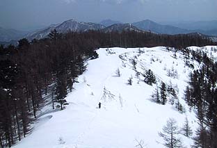 ← | 堂所下から見る石尾根・千本ツツジ付近の稜線 ※南に面した登山道には残雪は少ない |