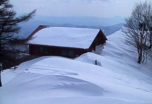 ← | 雲取山頂避難小屋 ※裏側には1m位の残雪がある |