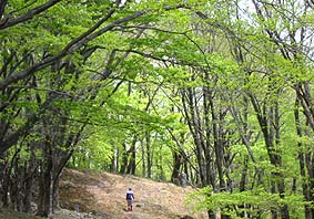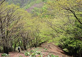 東日原から30分程登るとミズナラ林となる |