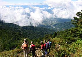 ← | 唐松尾根上部 ※塩山市街や甲府盆地を雲間に見下ろす |