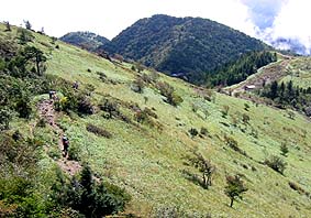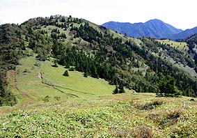 ← | 石丸峠から上日川峠に下る道 ※上部は草原で気持ちの良い場所 |