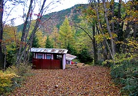 大ダワの避難とトイレ(手前) ※すぐ下を林道(車道)が走る |