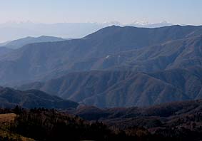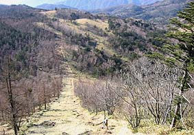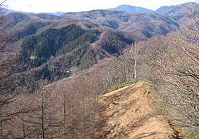 防火帯の最上部から来た道を振り返る ※中央奥の山は甲武信岳 |