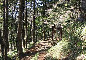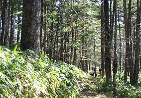黒槐尾根との分岐 ※針葉樹の深い林の中 |