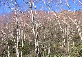 ← | 黒槐尾根上部は見事なダケカンバの林 |
