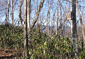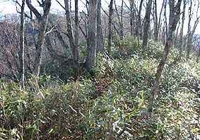 ← | 尾根からはスズタケの中を行く。 ※除々に深くなり、背丈を超える箇所も多い |