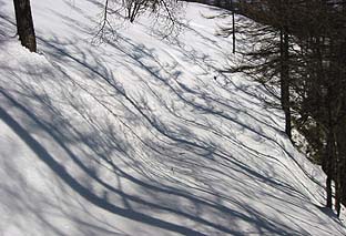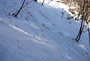 ← | 沢筋の雪流れは雪が深い ※腰までのラッセル、先に踏み跡はなし |