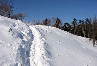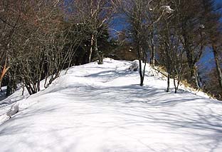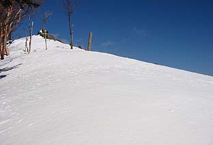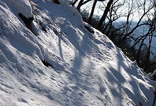 ← | 雲取山頂へは急傾斜の直登となる ※吹き溜まりの積雪は深い (そうとうきついラッセル・普段の3倍の時間を要した) |