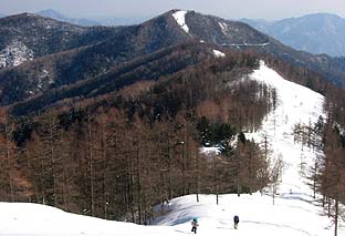 後山林道上部と谷筋 ※林道は除雪されているが日陰はアイスバーン |