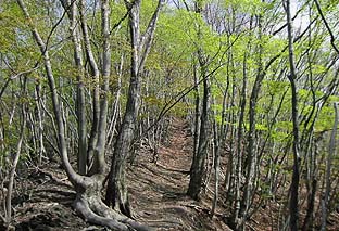 ← | 倉戸山山頂が近づくにつれ、芽吹きは浅くなる |