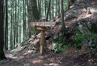 ← | 奧多摩湖遊歩道(最上部)との合流点 ※(左手)山道と表示されている方から来た |