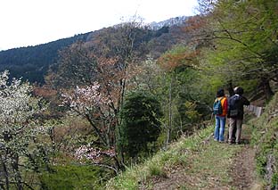 西久保へ下る道 ※ヤマザクラもまだ咲き残っている (奥中山集落から西久保へは急坂を下る) |