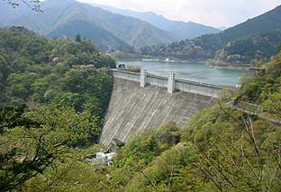 浅間神社(奥中山集落手前)から見る奧多摩湖 |