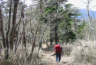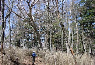 天祖山頂近くはまだ芽吹いていない。 ※ダケカンバの林に変わる |