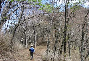 ← | 長沢背稜の縦走路は緩やかで柔らかく歩きやすい ※灌木が芽吹きだした頃で、周囲は明るい (長沢背稜でも今日のルートは平坦が多く、最も快適) |