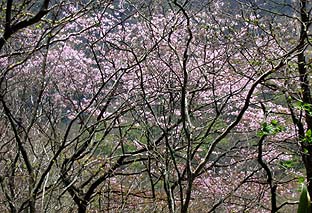 ← | オオヤマザクラは花期、ピンクの花が鮮やか ※標高1,500mくらいの山中では今が盛り |