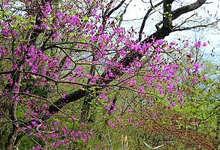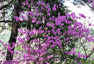 下部の林の中ではヤマツツジが花の季節 |