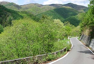 作場平橋まで一ノ瀬林道をを歩く ※林道周囲は新緑の盛り |