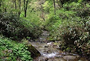 ヤブ沢下部 ※沢筋はきれいな新緑 |