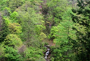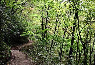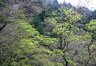 山麓部は広葉樹のきれいな新緑 |