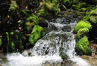 ← | 登山道脇の小さな流れにも春を感じる ※上部まで来ると流れも細くなる |