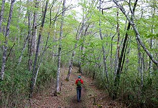 ← | 下るうちカラマツ林になる ※新緑の盛りだった |