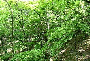 ブナ坂手前の林 ※この付近は平坦路 |