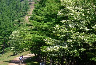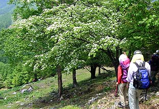 ← | 七ツ石山頂脇のミヤマザクラ ※雲取山〜七ツ石山間の尾根筋では花の盛り |