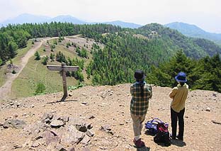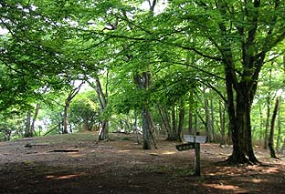 ← | 高丸山頂は広葉樹の中、展望は西面が少し ※山頂両側はきつい上り下り |