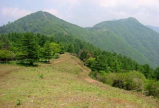 ← | 千本ツツジ山頂から高丸山(手前)、日陰名栗峰を見る ※展望の効く緩やかな山頂 (防火帯にはワラビも多い) |