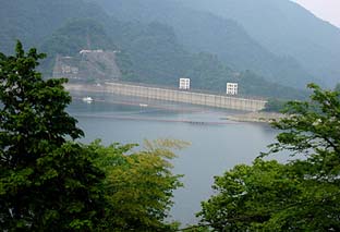 熱海集落まで下るとダムが見える ※山頂からは急な下りが連続する |