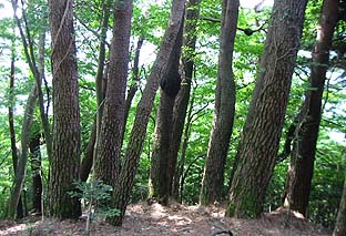 杉林を登ると一旦マツの林となる ※この後、再び杉林の急登となる |